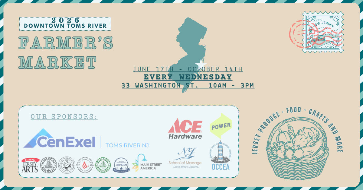 | FreeReturning for a fresh new season, with fresh produce! See some of your old favorites and find something new at this years’ Farmers’ Market located between the municipal courtyard by Ocean County Library and Town Hall